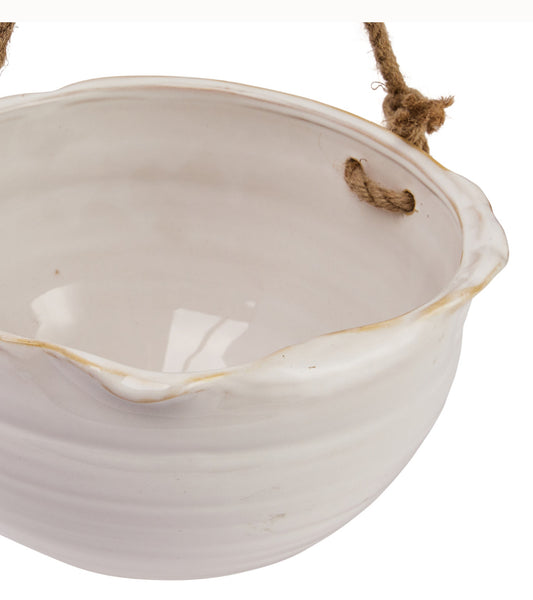 Hanging Stoneware Planter w/Jute Rope Hanger