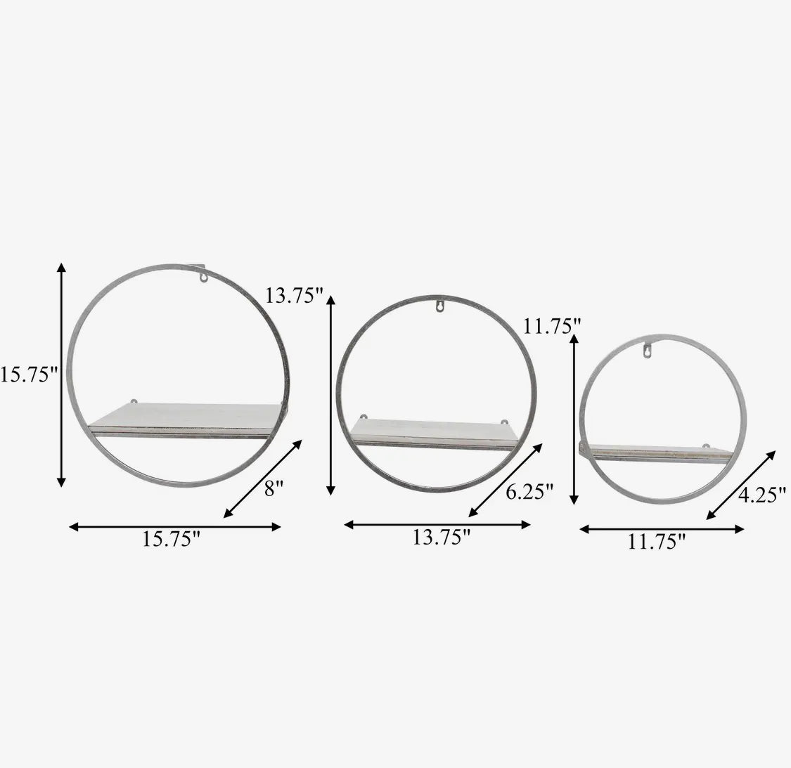 12” Silver Metal/White Wood Wall Shelf
