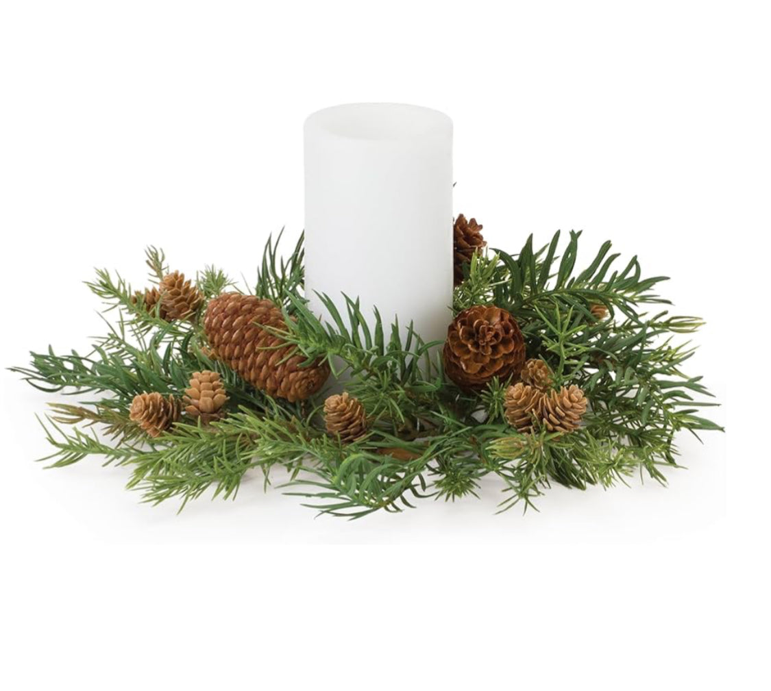 Candle Sold Separately, Adds color and texture to any candle, ideal for seasonal decorating. This simple greenery will look beautiful accenting a front door, window, mantle or displayed flat as a table center piece.