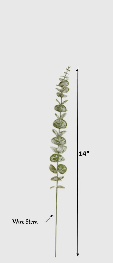 Lifelike soft touch frosty flocked eucalyptus stem-14” single stem