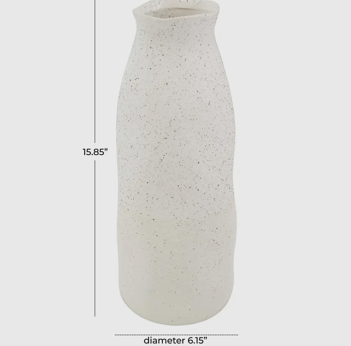 16” Ceramic Asymmetrical Artistic Ivory Vase