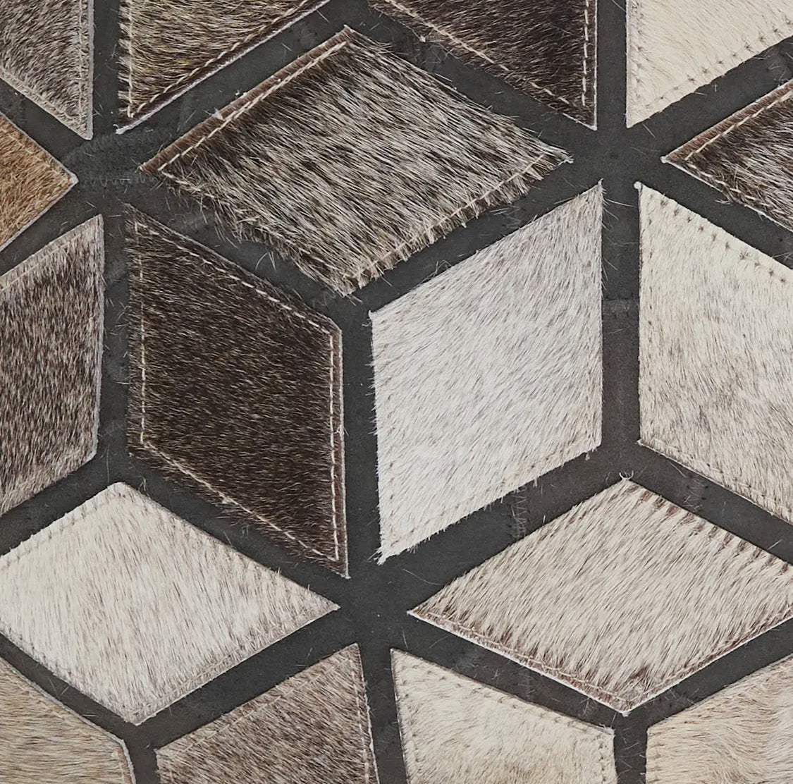 16” Patchwork Hair On Leather Pillow