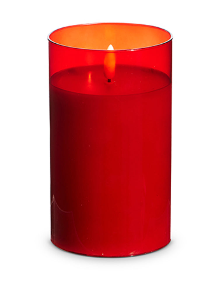 3.5” x 6” Red Glass Ivory Pillar Candle