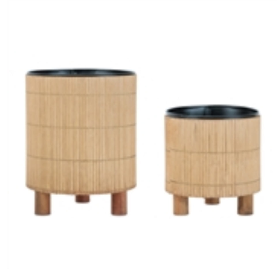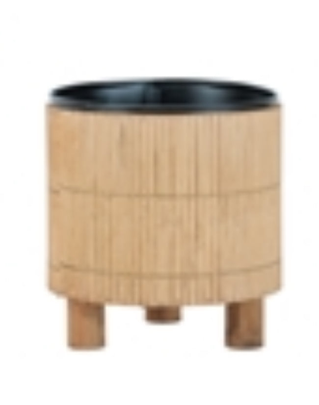 6.25”T x 6”Round, Bamboo planter w/Wood feet and black liner