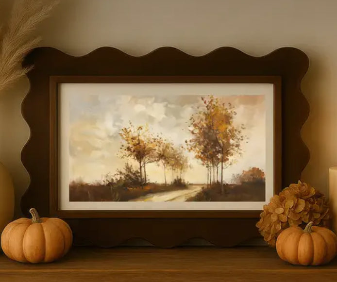 8”x10” Warm Autumn Trees Landscape w/ Weathered Frame