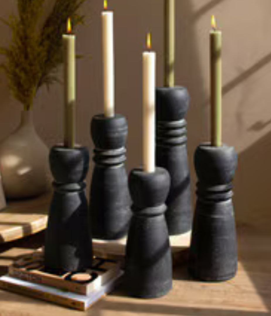 Black Clay Taper Candle Holder-sm