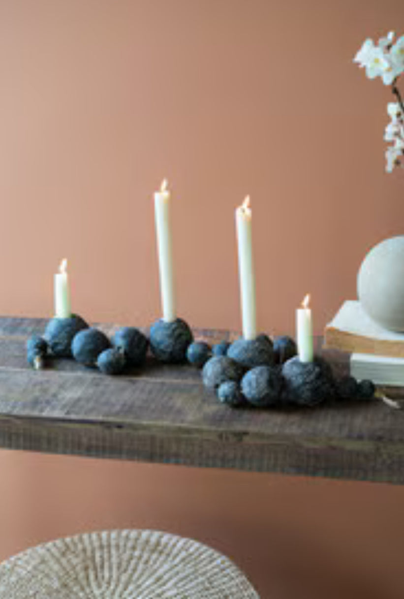 Black Tabletop Clay Beads Taper Holder