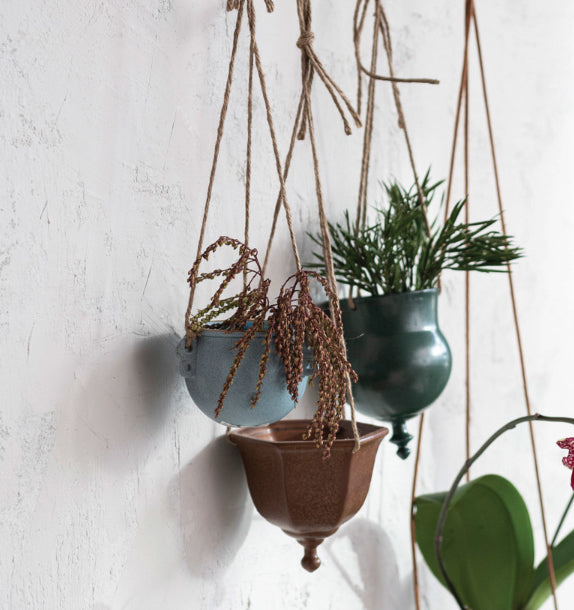 Hanging Stoneware Planter W/Jute Rope Hangers