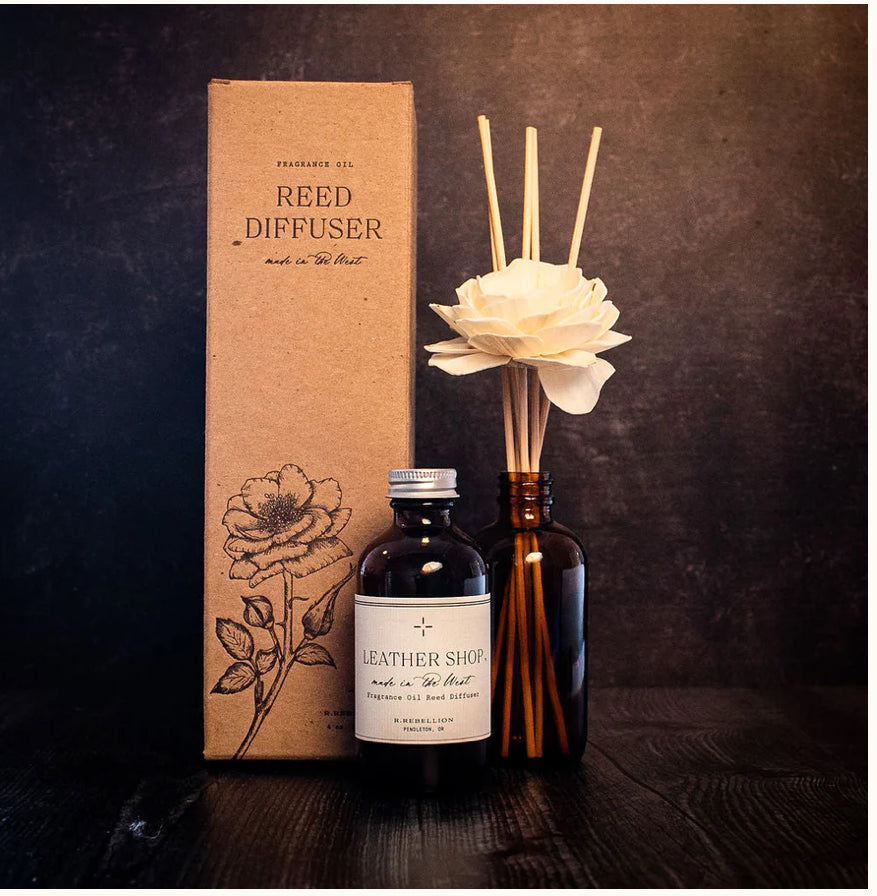 Leather Shop: leather, lemon, mandarin, patchouli, frankinscense