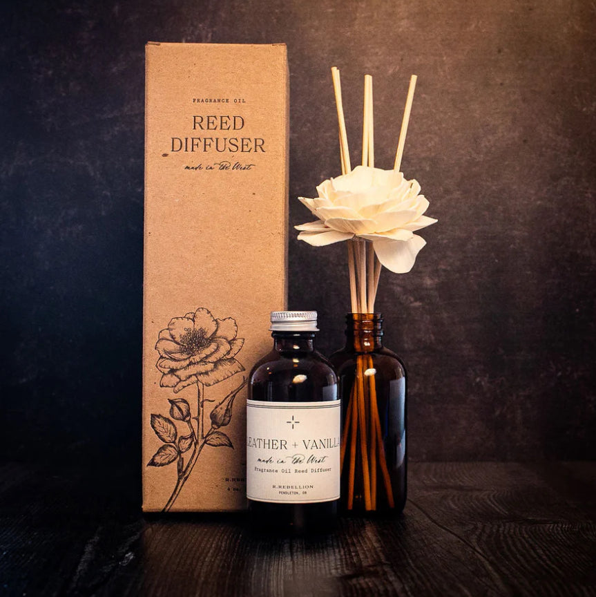 4 oz. Scented diffuser oils, 8 reeds, 1 sola wood flower.