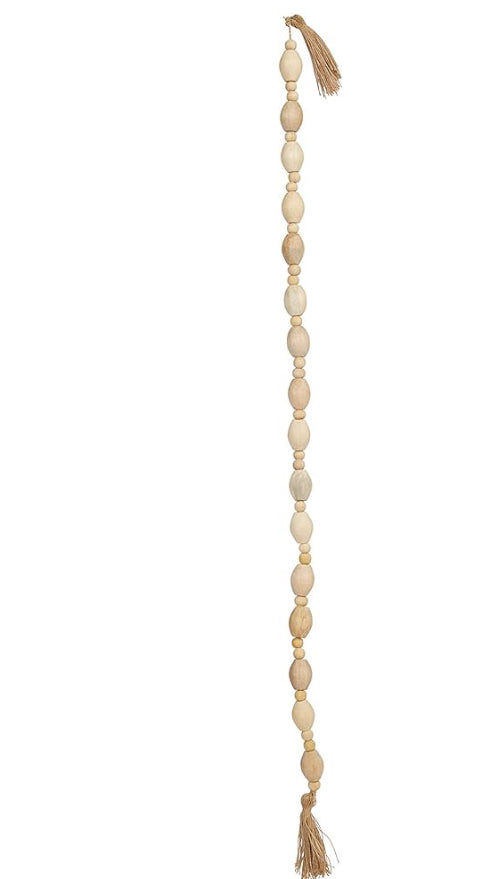 Mango Wood Oval Bead Garland w/Abaca Tassel