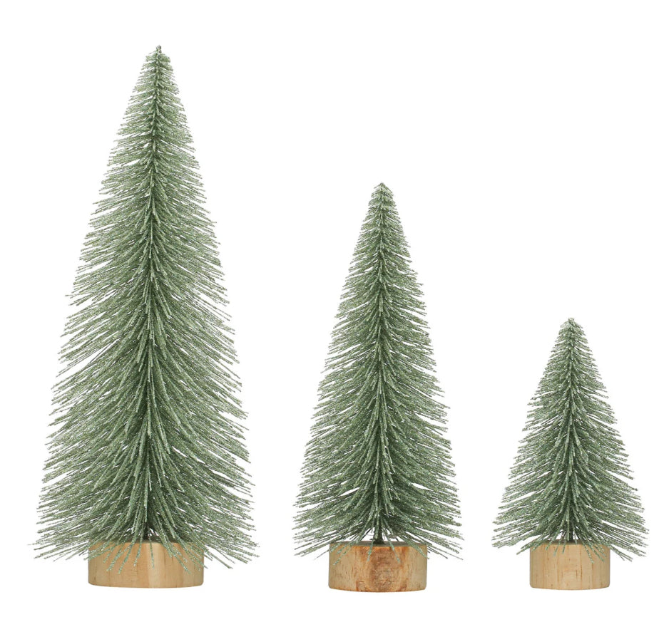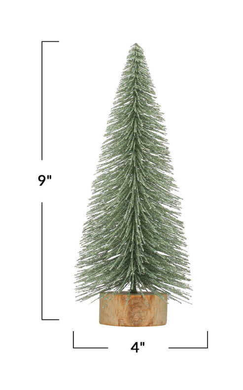 4” Round x 9”H Bottle Brush Tree w/Glitter & Wood Base, Mint color