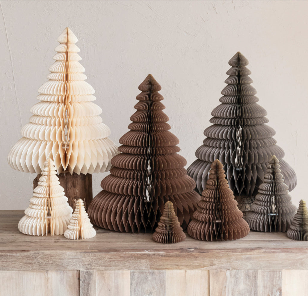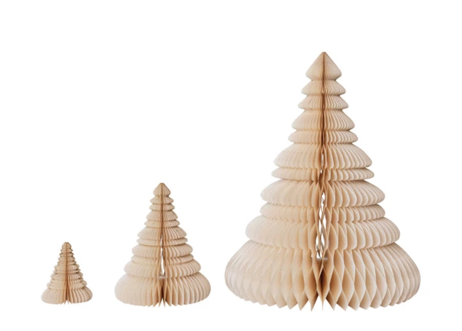 Set/3 Cream Paper Folding Honeycomb Tree
