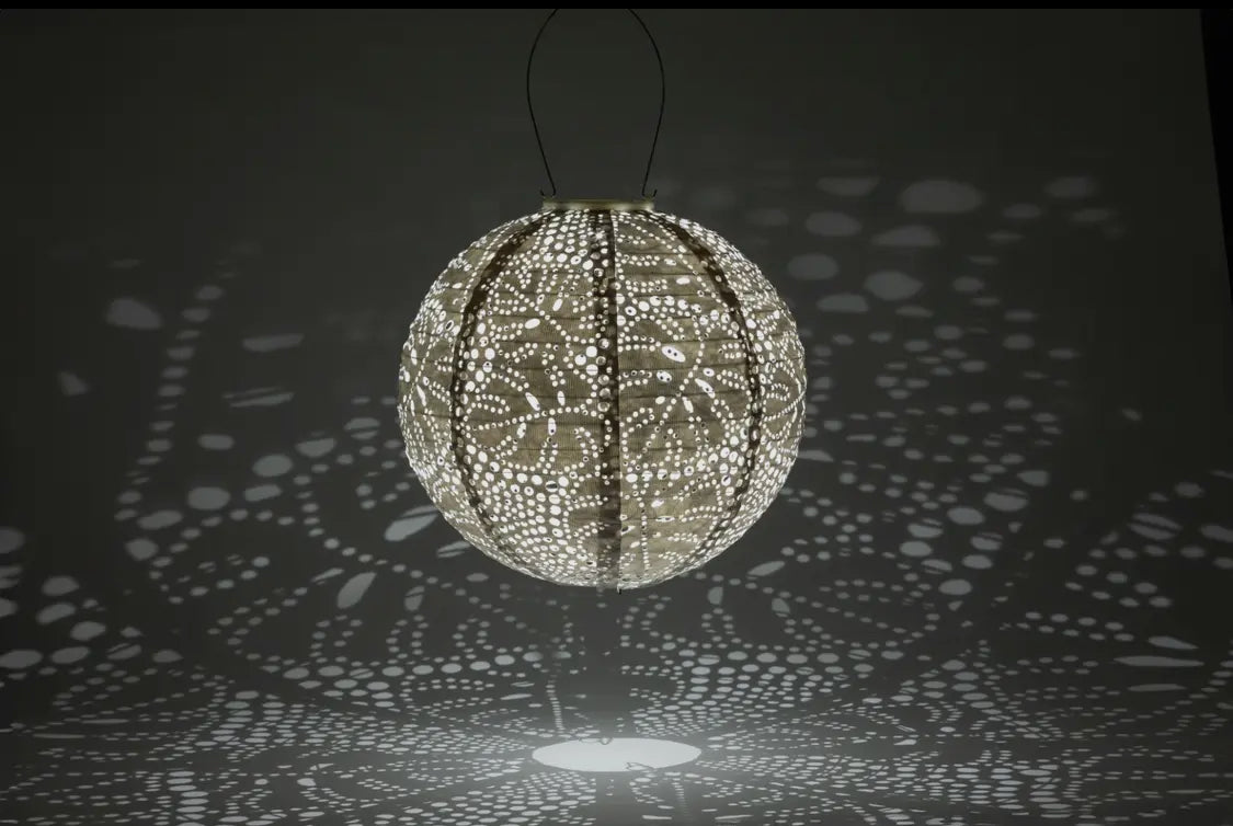 Color: Porcelain, A flowering native plant in tropical forests’ the large monstera leaf punch on the Stella solar lantern brings a feel of the tropics to your outdoor space. With an intricate yet bold pattern and laid back color assortment, warch as the Stella Monstera comes to life at sundown. Created from DuPontTM Tyvek fabric with durable satin finish this lantern emits captivating patterns when illuminated by night. Mix and match with other Solar Lantern for a festive look.
