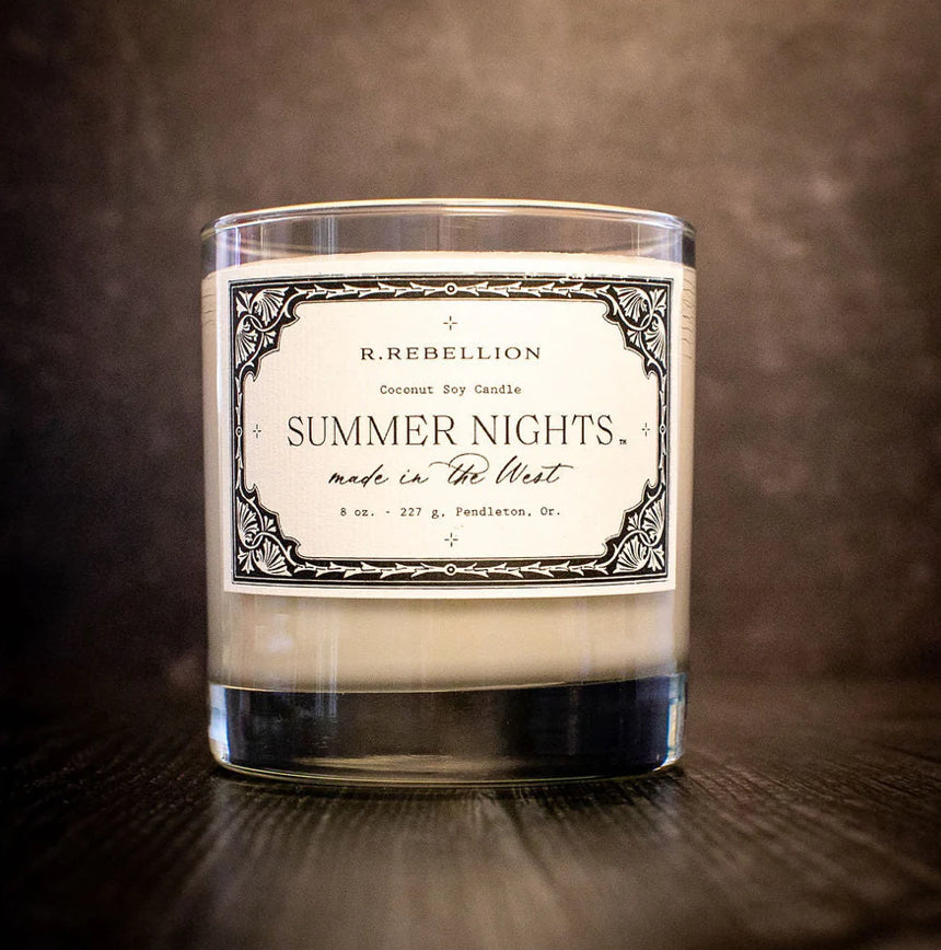 8 oz, burns up to 60 hours, Vessel: Reusable rocks glass, all-natural coconut + soy wax, phthalate-free fragrance oils, wood wick, zero dyes.