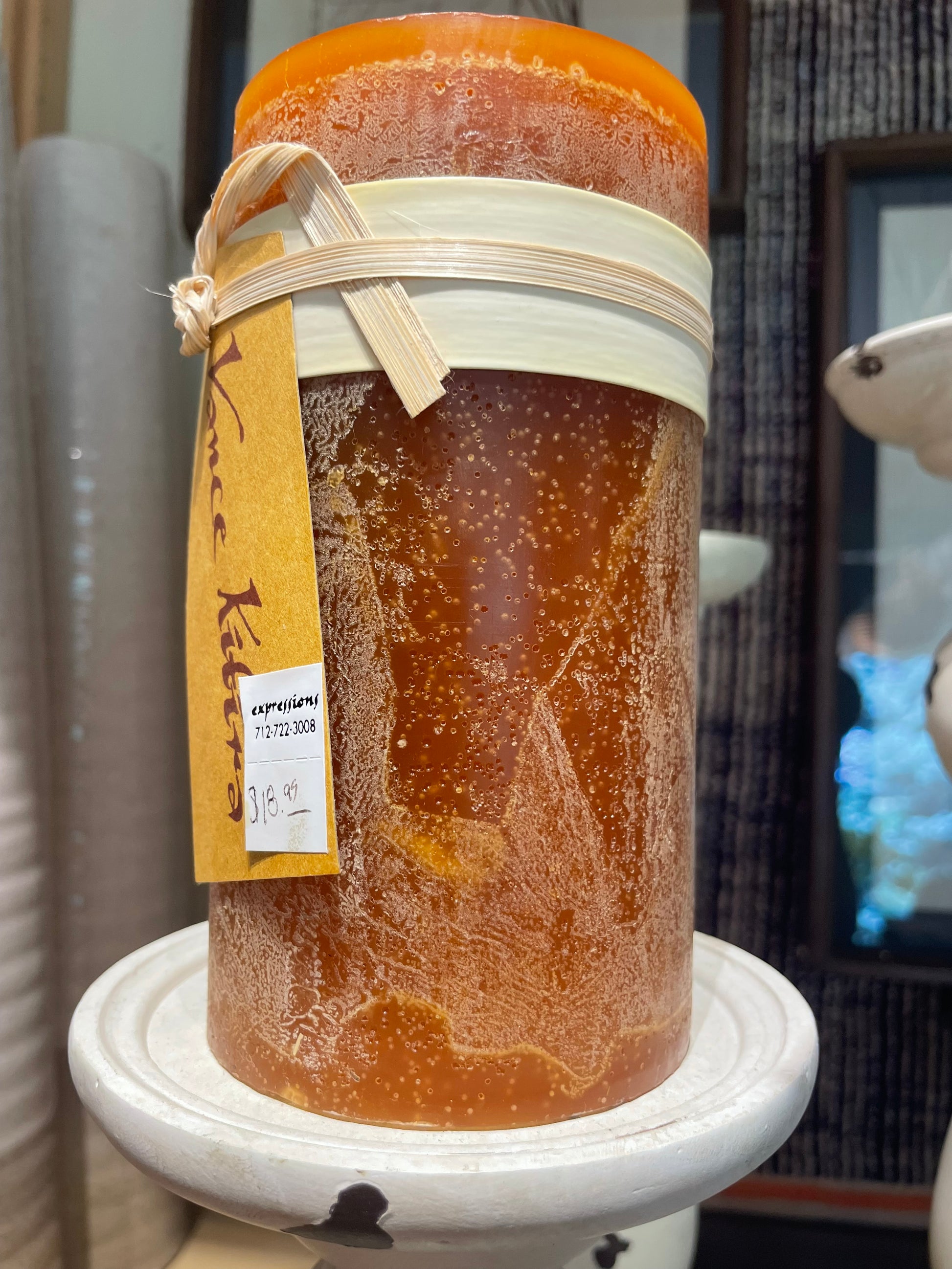 3.25” x 6”, inspired by nature, these hand pored candles are made only of fully refined paraffin, featuring cotton wicks from the USA and fine dyes from Germany.This insures our candles burn slowly and evenly, emitting a warm glow.