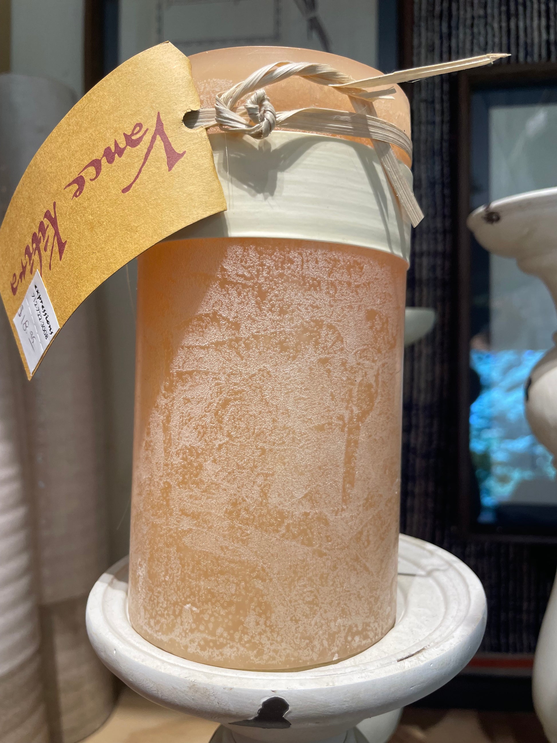3.25” x 6”, inspired by nature, these hand pored candles are made only of fully refined paraffin, featuring cotton wicks from the USA and fine dyes from Germany.This insures our candles burn slowly and evenly, emitting a warm